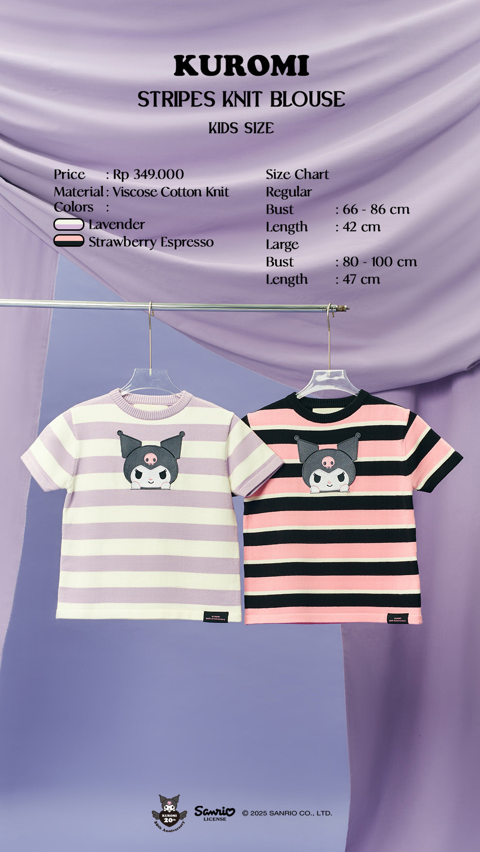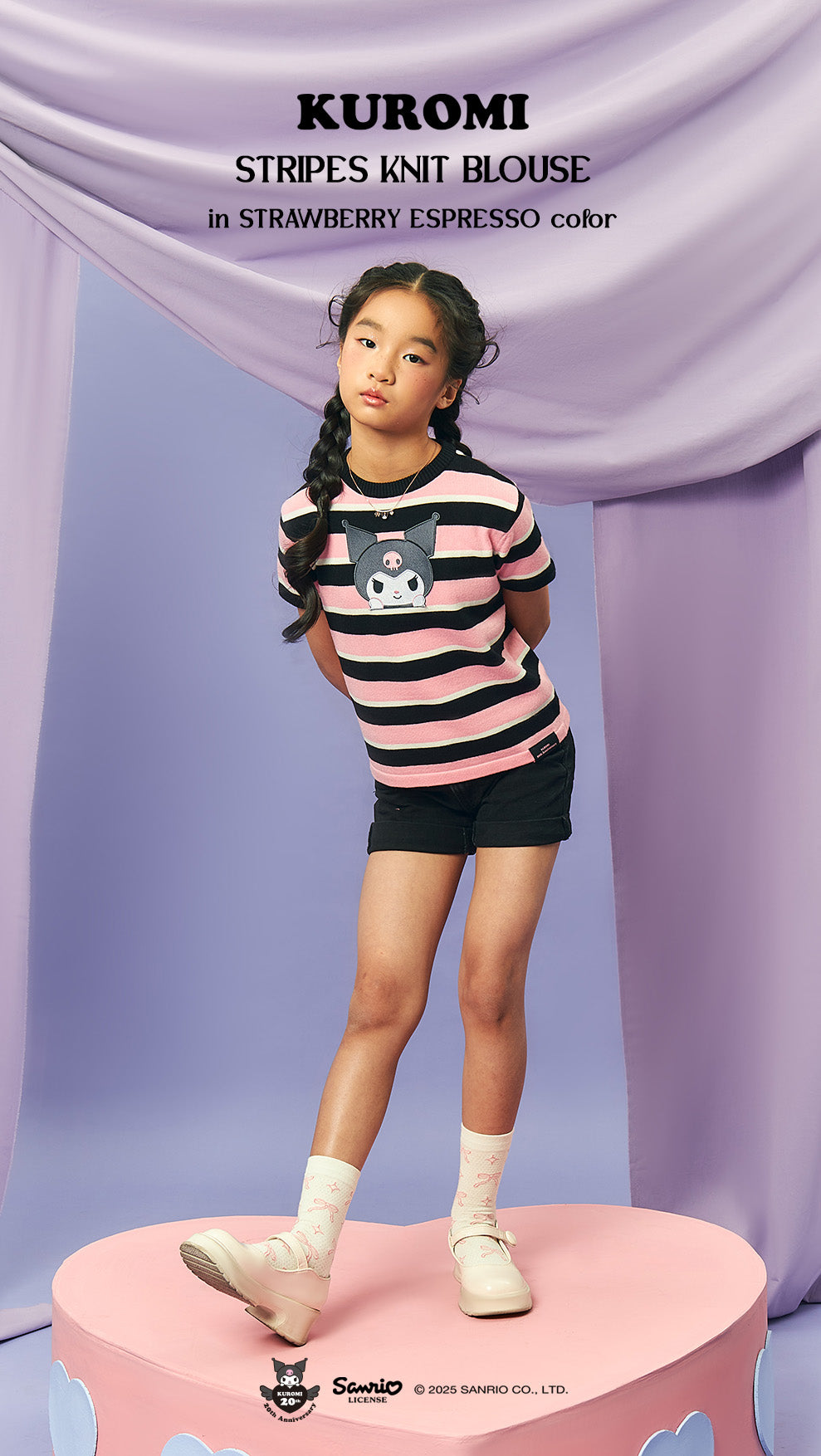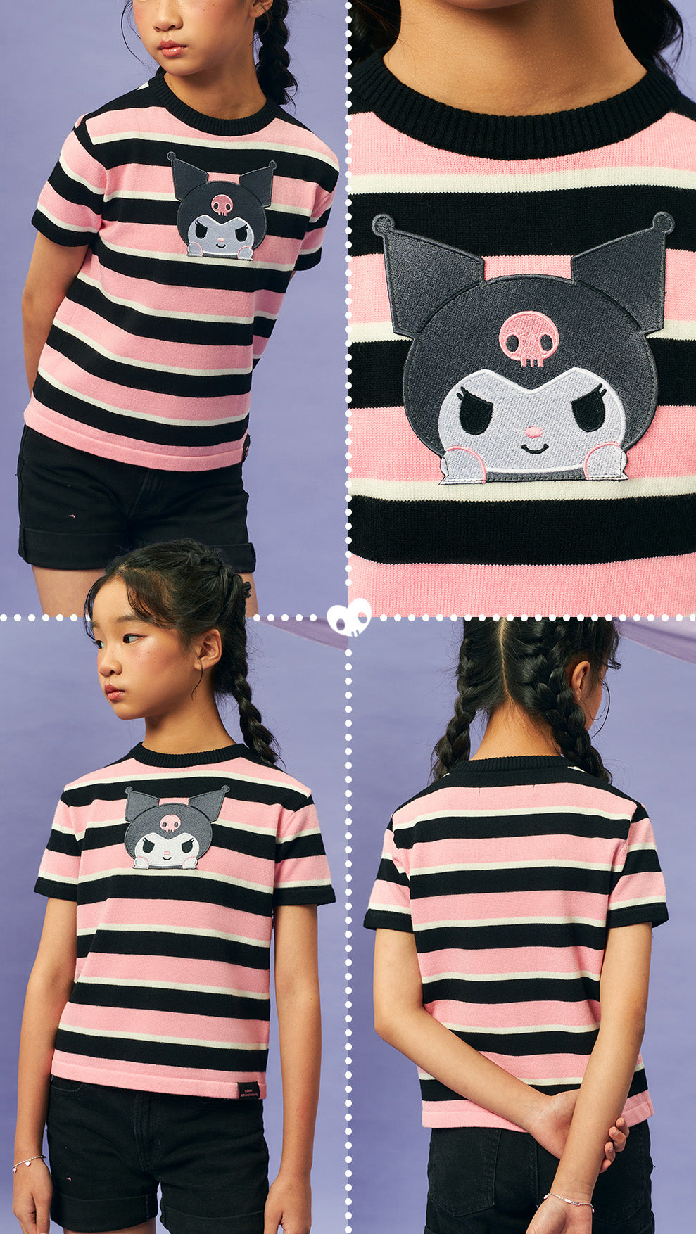 Kuromi Stripes Knit Blouse Kids - Strawberry Espresso / L is backordered and will ship as soon as it is back in stock.