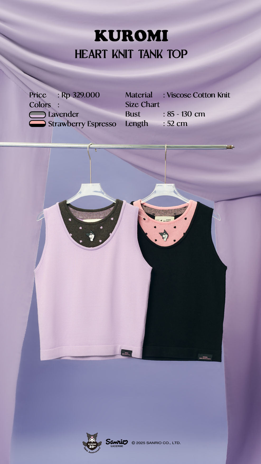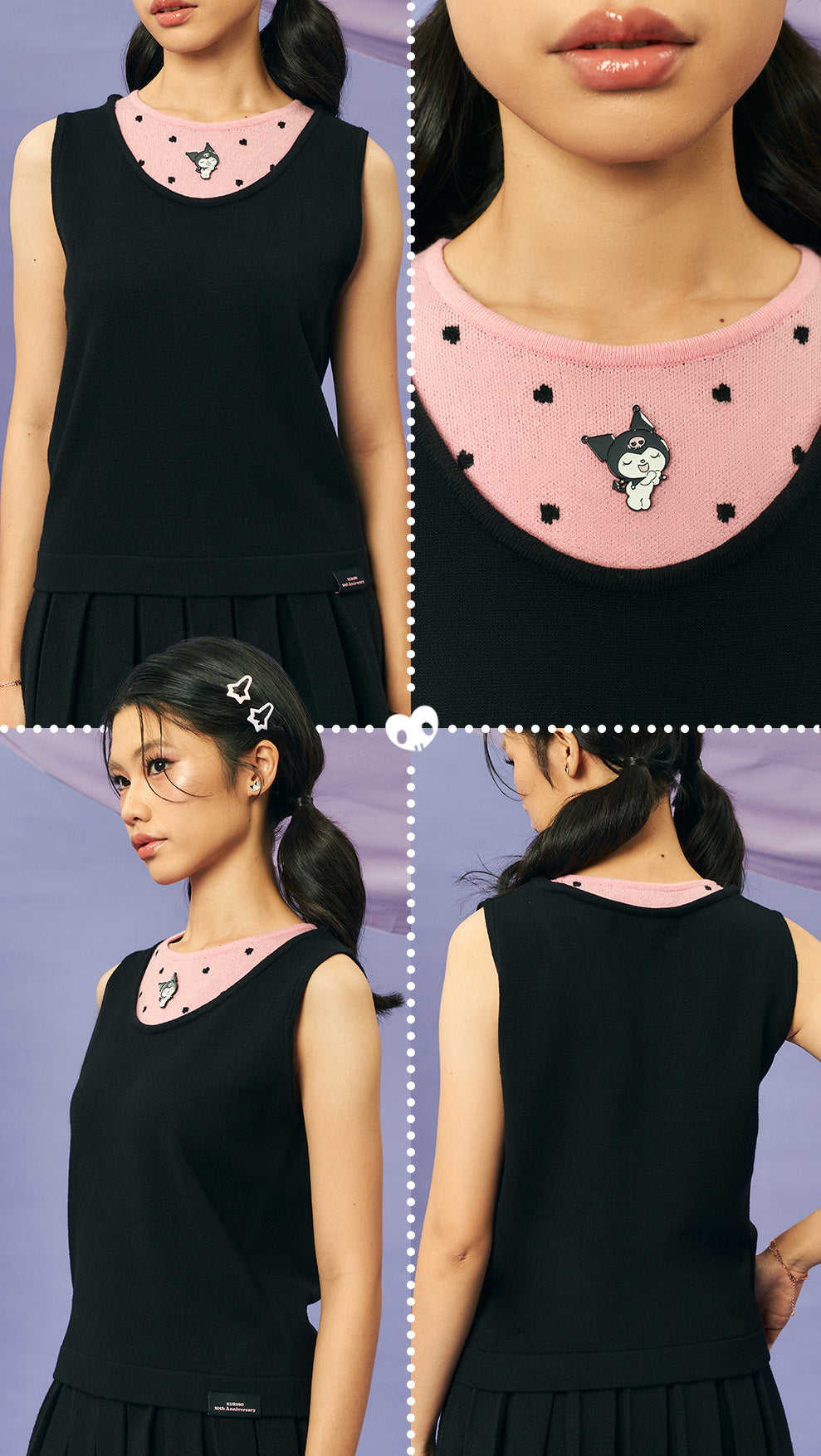 Kuromi Heart Knit Tank Top