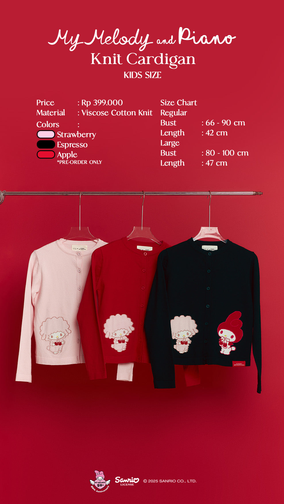 My Melody and Piano Knit Cardigan Kids - Strawberry / L is backordered and will ship as soon as it is back in stock.