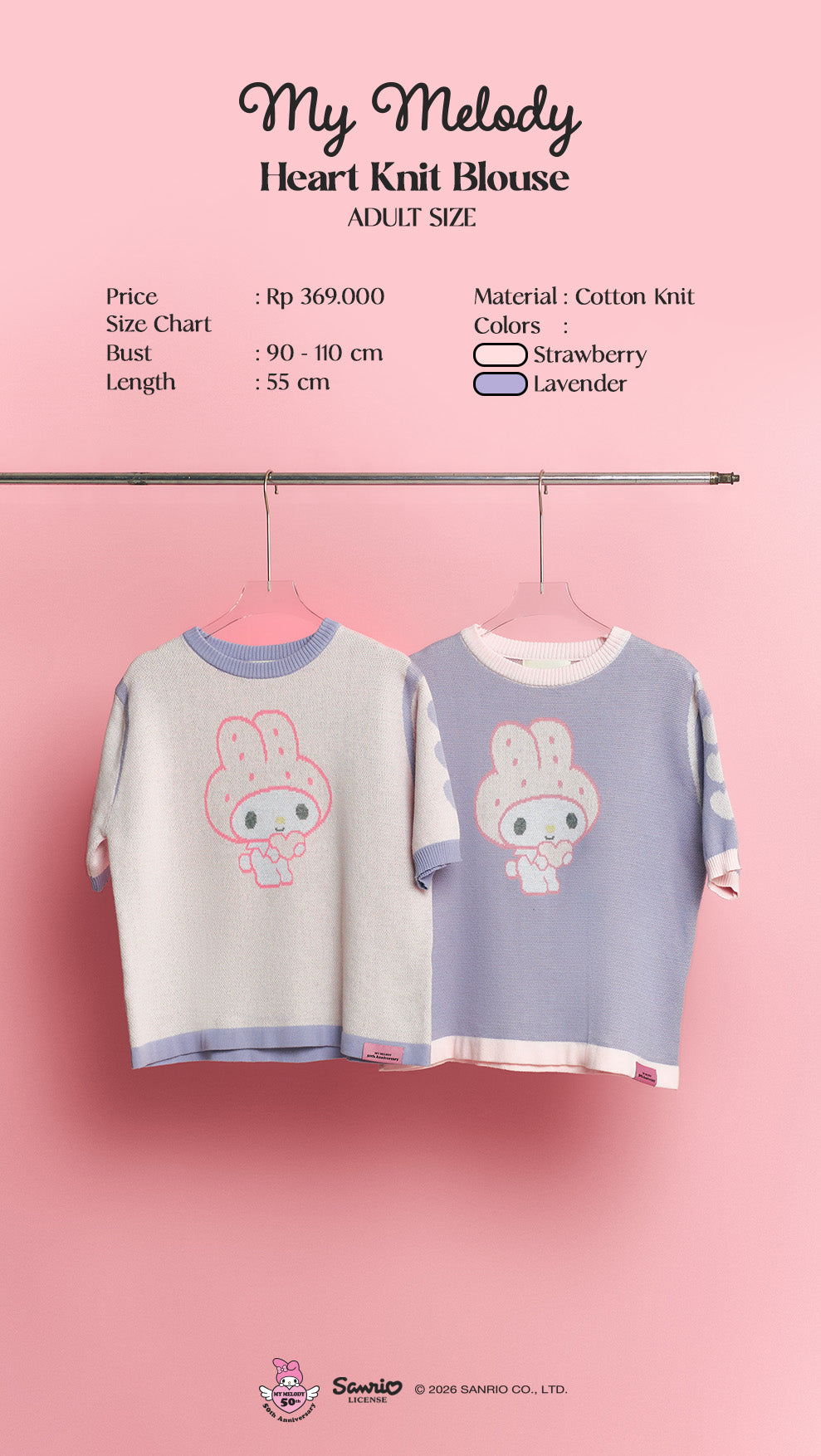 My Melody Heart Knit Blouse - Strawberry is backordered and will ship as soon as it is back in stock.